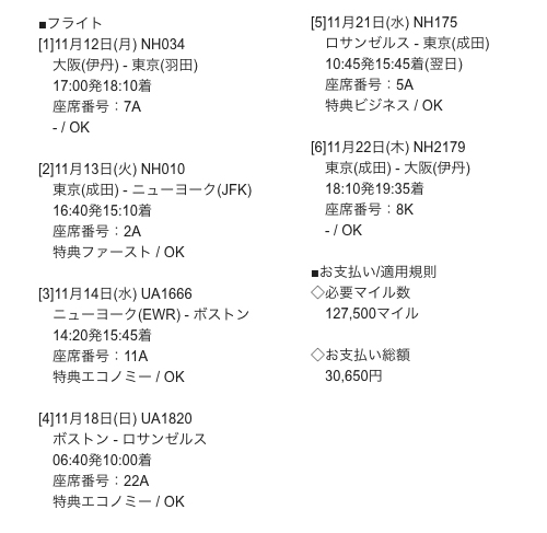 フライト:NRT(成田国際空港 ・Narita International Airport)⇒JFK(ジョン・F・ケネディ国際空港・John F. Kennedy International Airport)